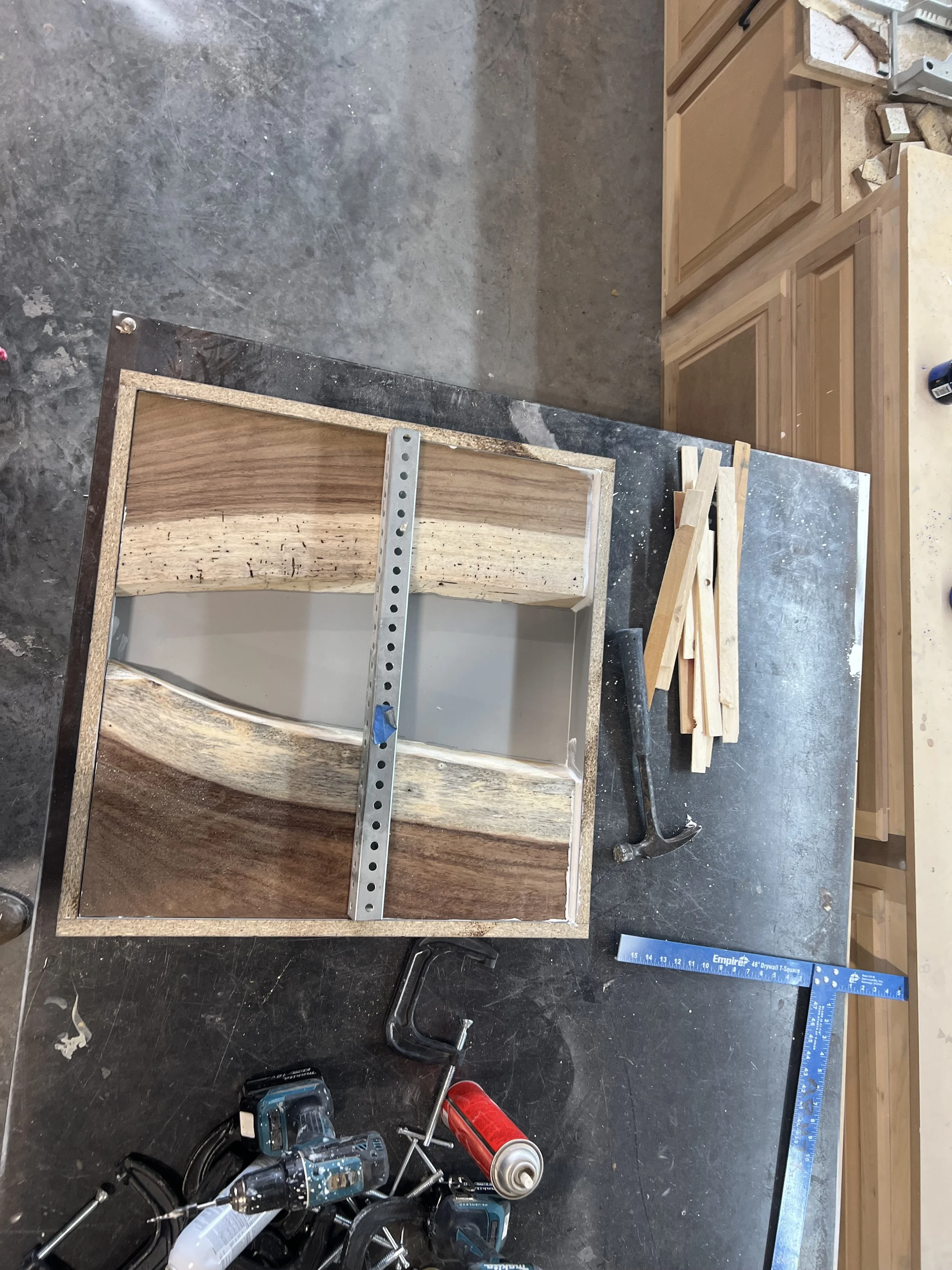 There are plenty of videos online that show the process. I thought I’d share a little of how Aaron approaches his art of building the perfect blend of wood and the colors for the epoxy pour.